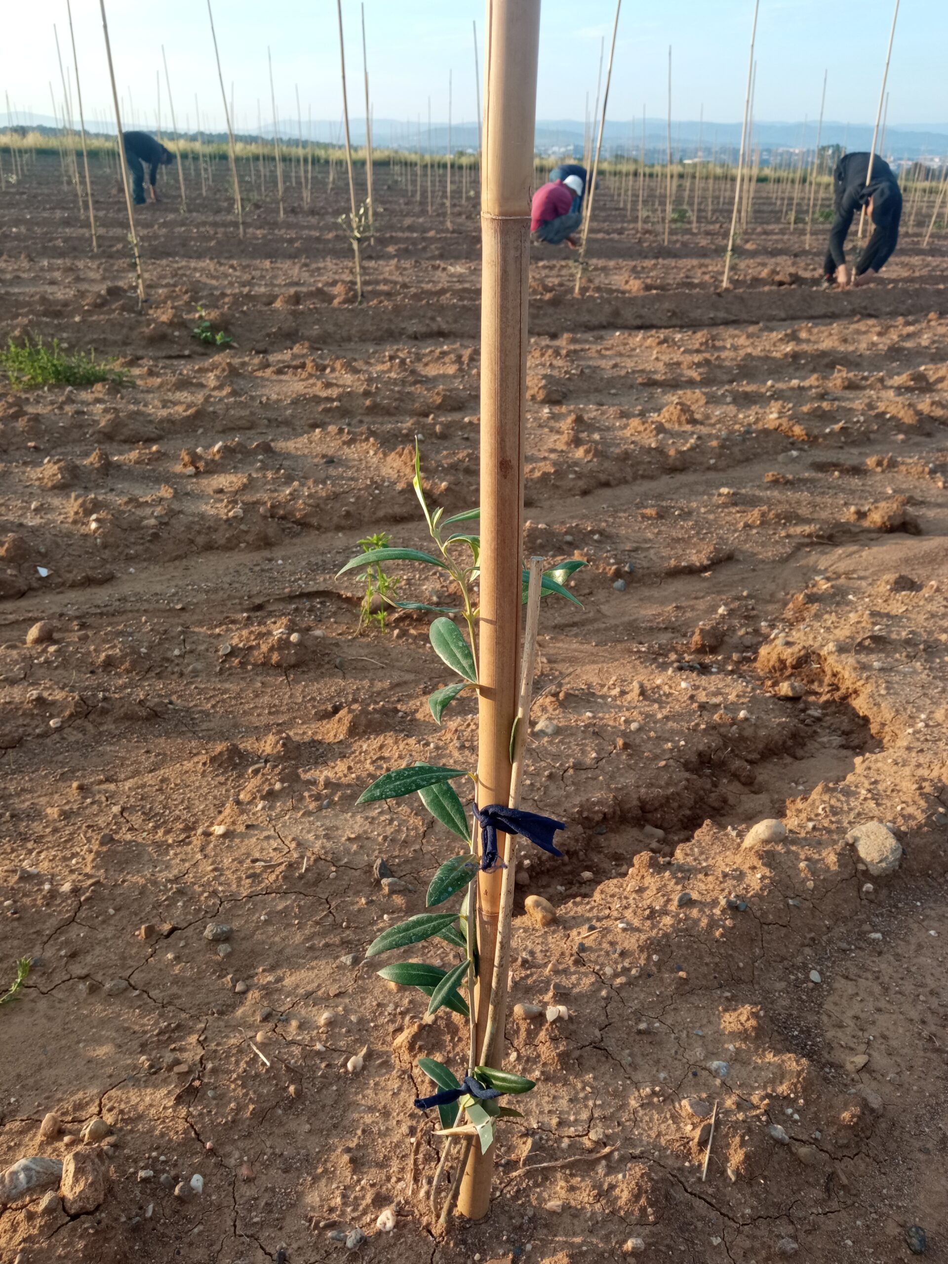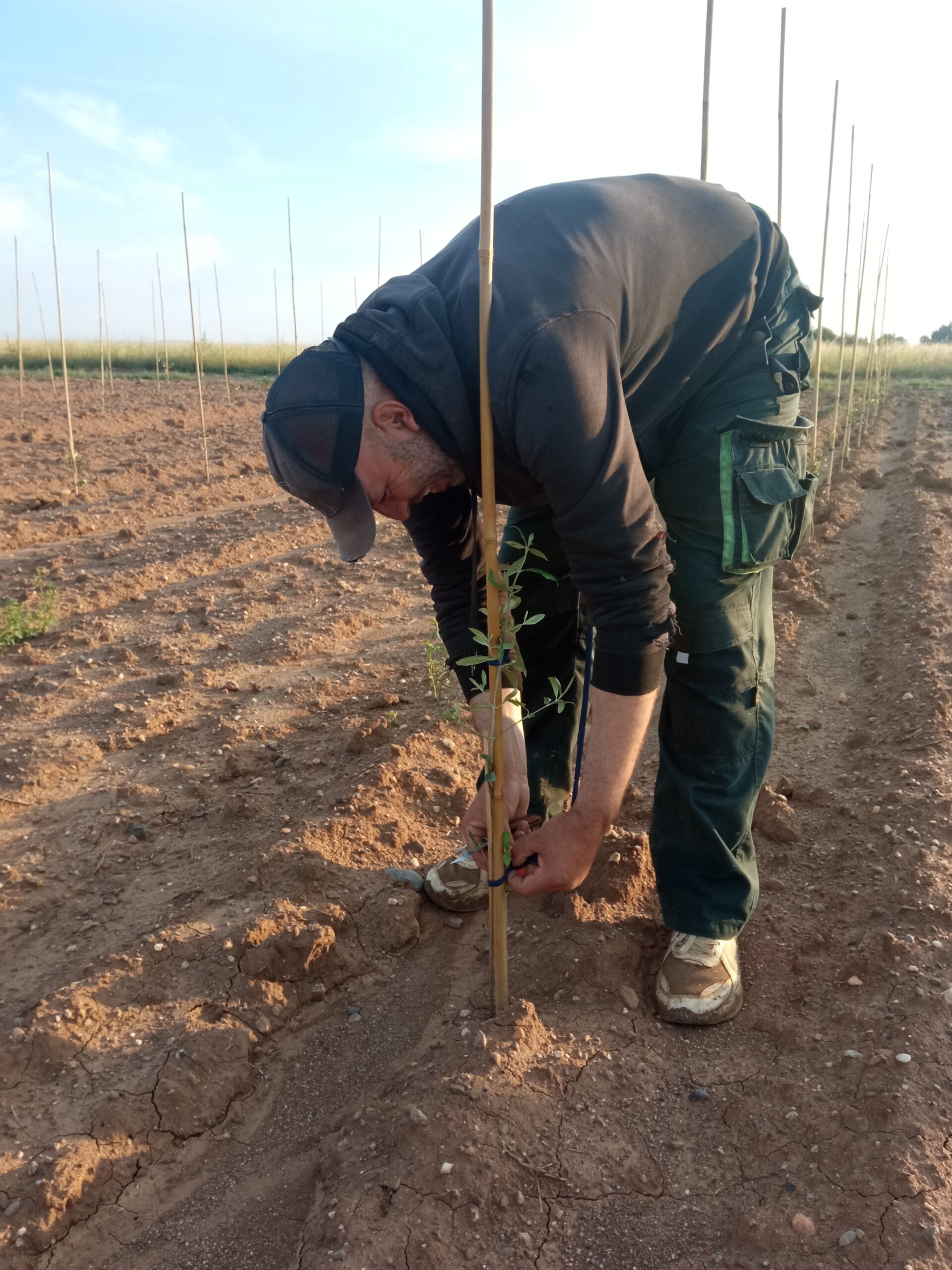 1. Nos équipes s’appliquent à l’attachage des oliviers,